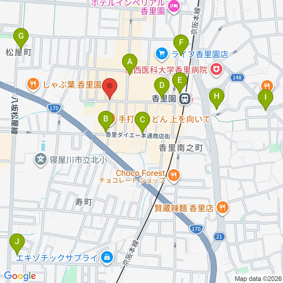 第一楽器 香里店周辺のコンビニエンスストア一覧地図