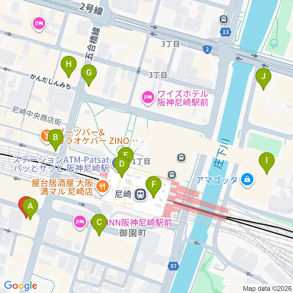 ベースオントップ尼崎店周辺のコンビニエンスストア一覧地図