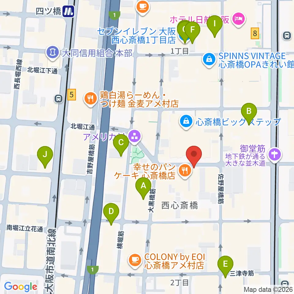 心斎橋パンゲア周辺のコンビニエンスストア一覧地図