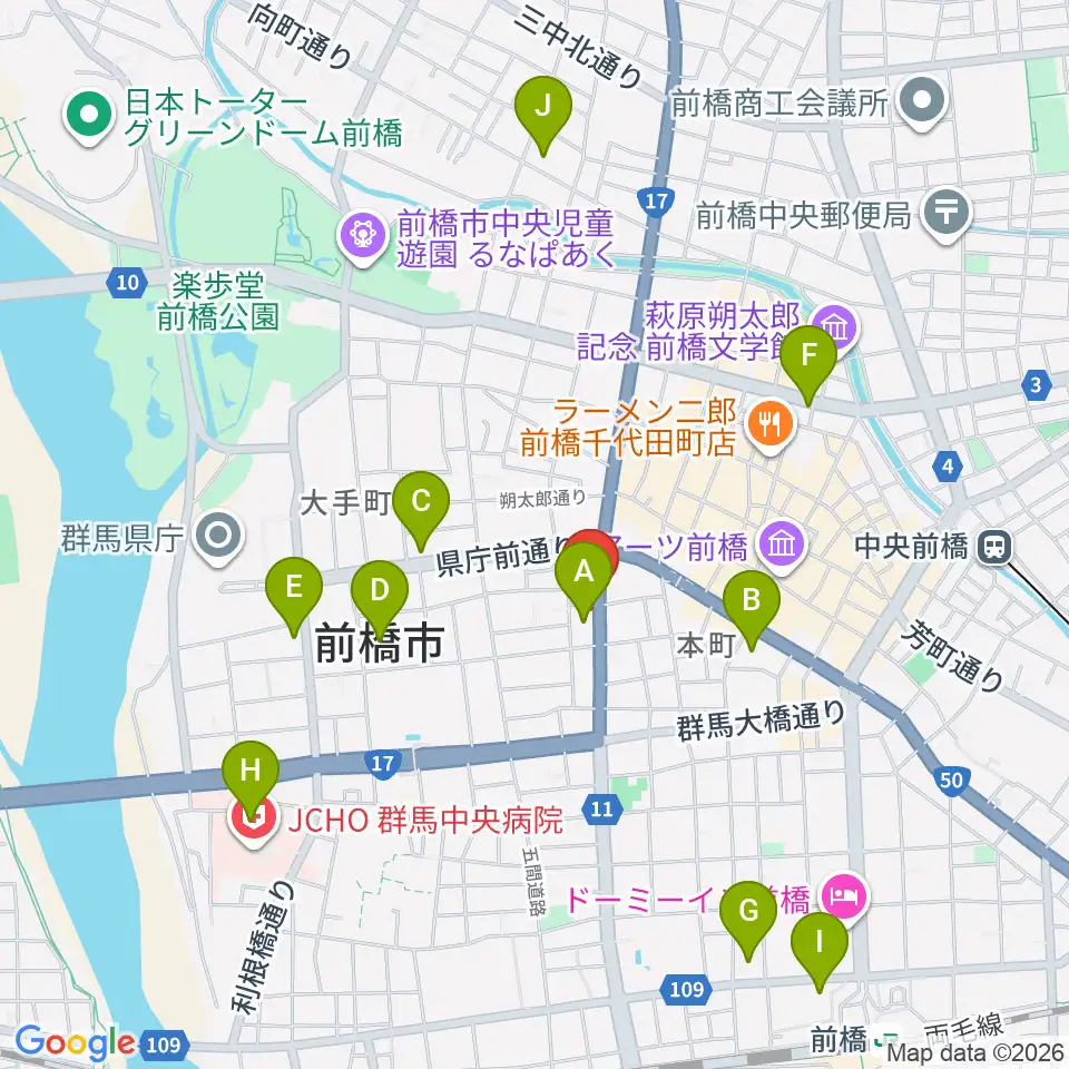 前橋DYVER周辺のコンビニエンスストア一覧地図