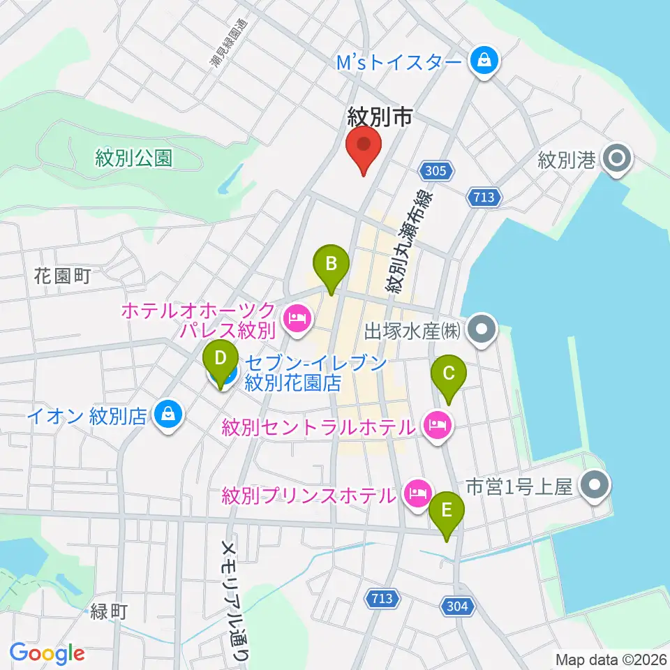 紋別市文化会館周辺のコンビニエンスストア一覧地図