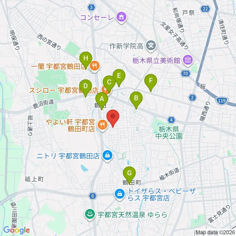 ヤマハミュージック宇都宮西センター周辺のコンビニエンスストア一覧地図