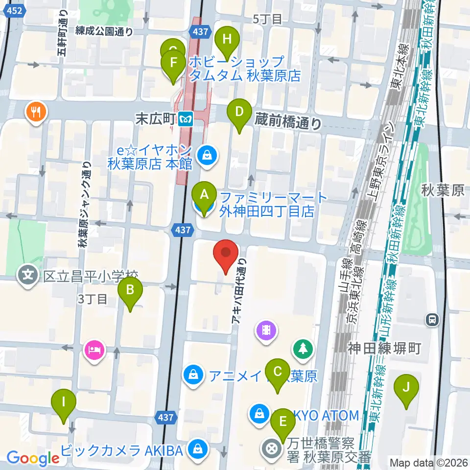 シマムラストリングス秋葉原周辺のコンビニエンスストア一覧地図