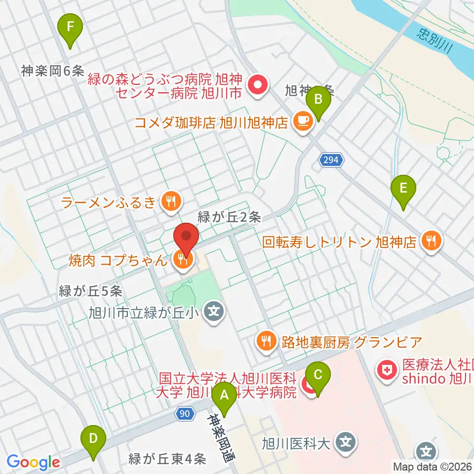 ローランド音楽教室旭川緑が丘校周辺のコンビニエンスストア一覧地図