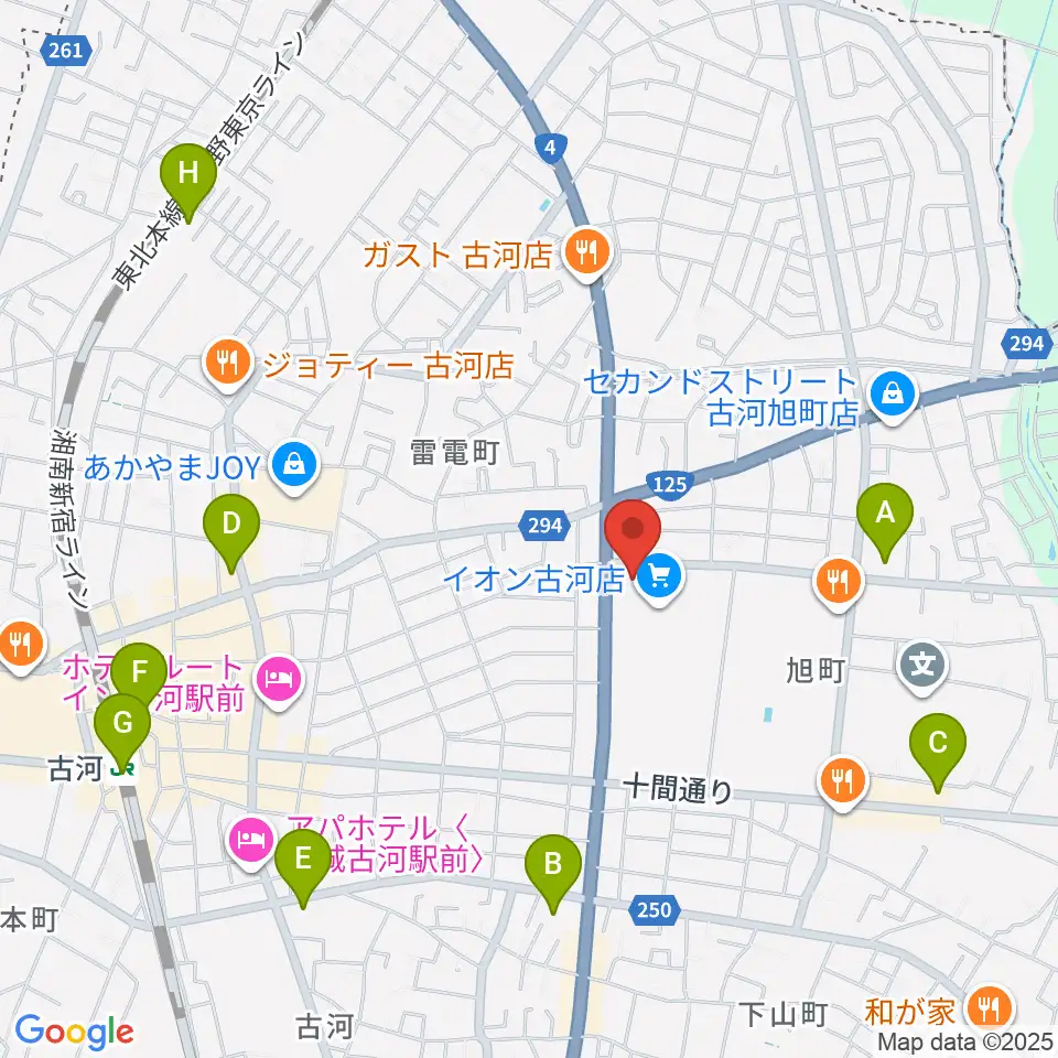 イオン古河センター ヤマハミュージック周辺のコンビニエンスストア一覧地図
