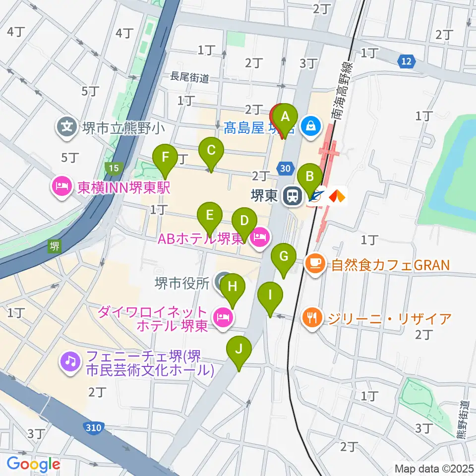 ヤマハミュージック 堺店周辺のコンビニエンスストア一覧地図