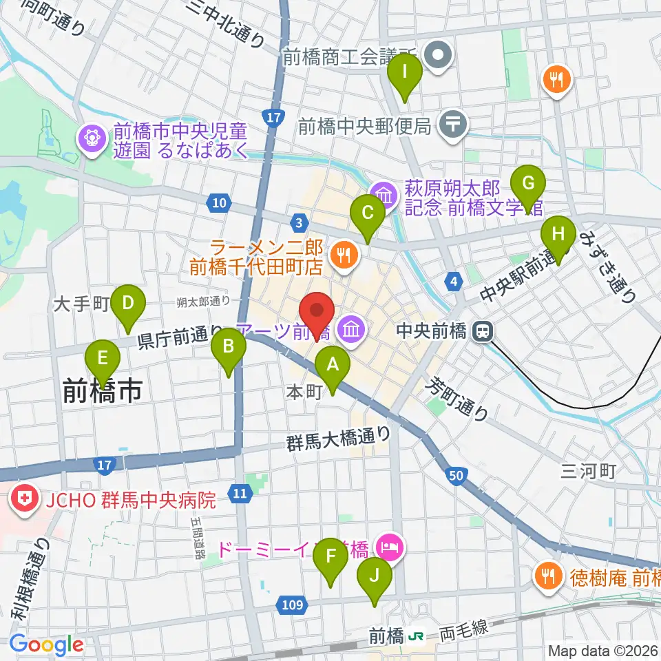 前橋ダウンビート周辺のコンビニエンスストア一覧地図