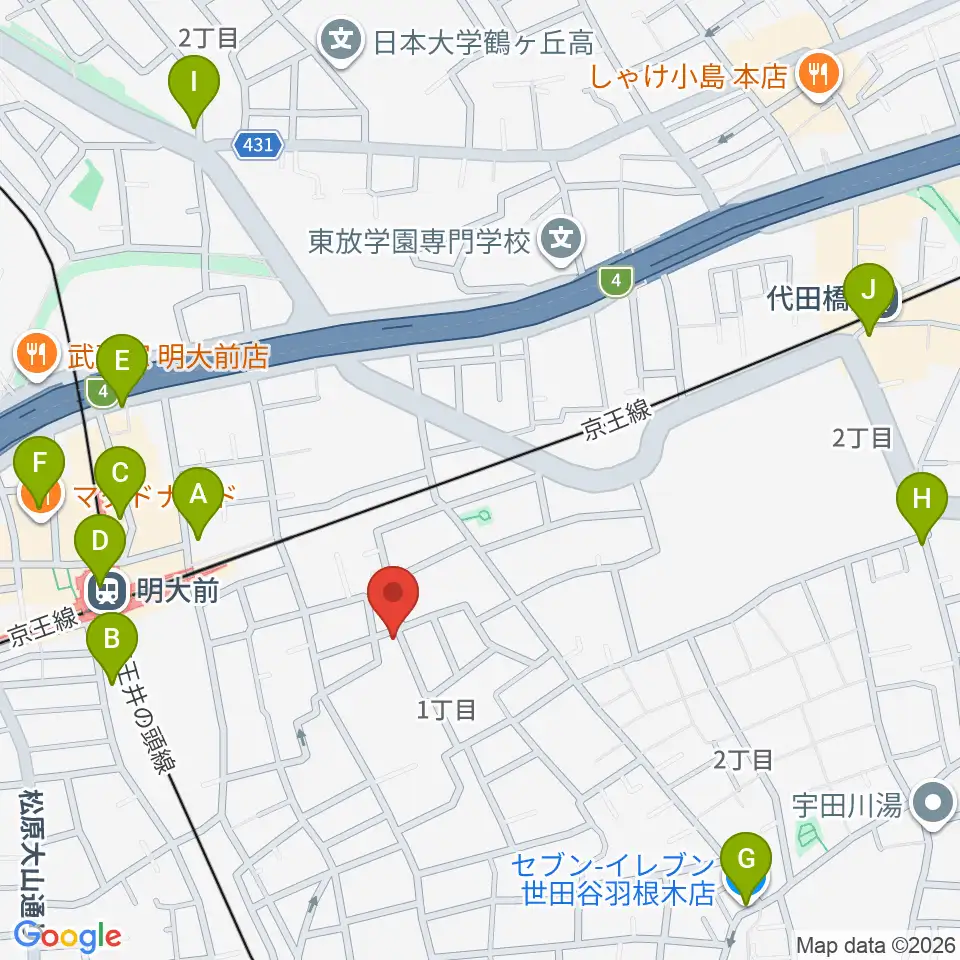 YRZ MUSIC 萬屋ドラム教室周辺のコンビニエンスストア一覧地図