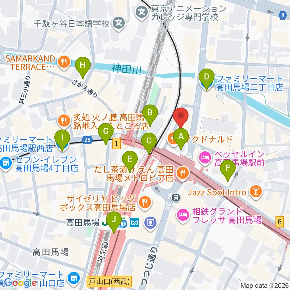 高田馬場LiveCafe mono周辺のコンビニエンスストア一覧地図
