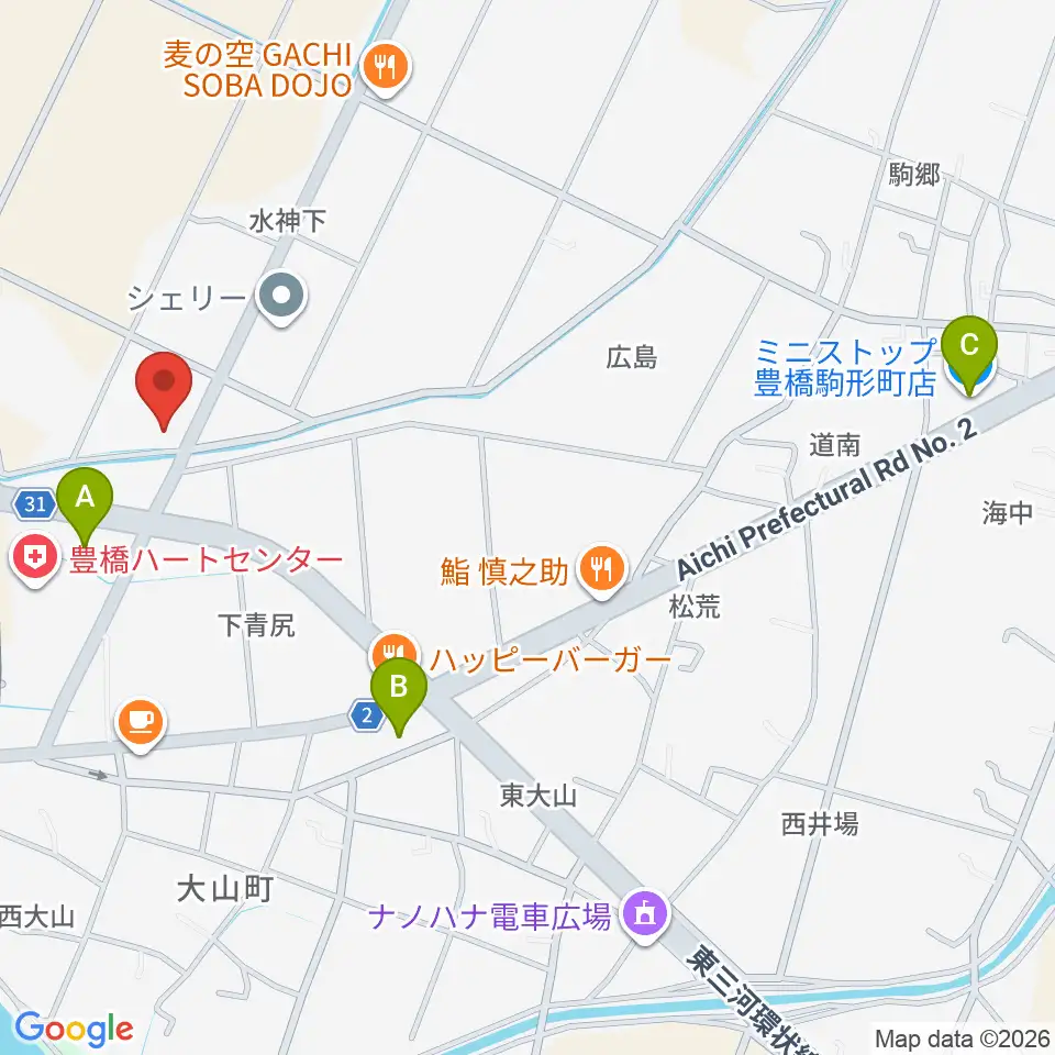 オリエント楽器 ミューズフォレスト豊橋南周辺のコンビニエンスストア一覧地図