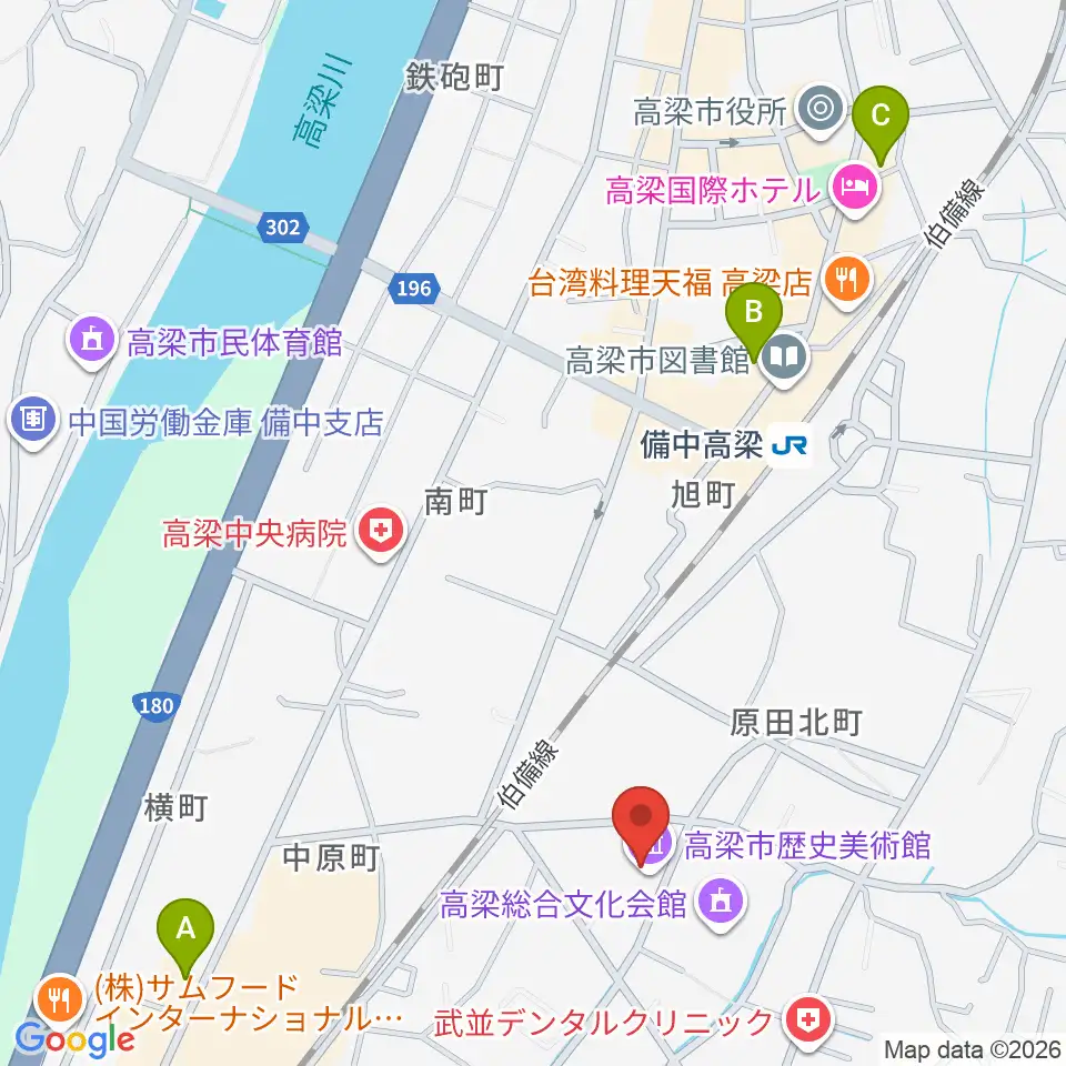 高梁市文化交流館周辺のコンビニエンスストア一覧地図