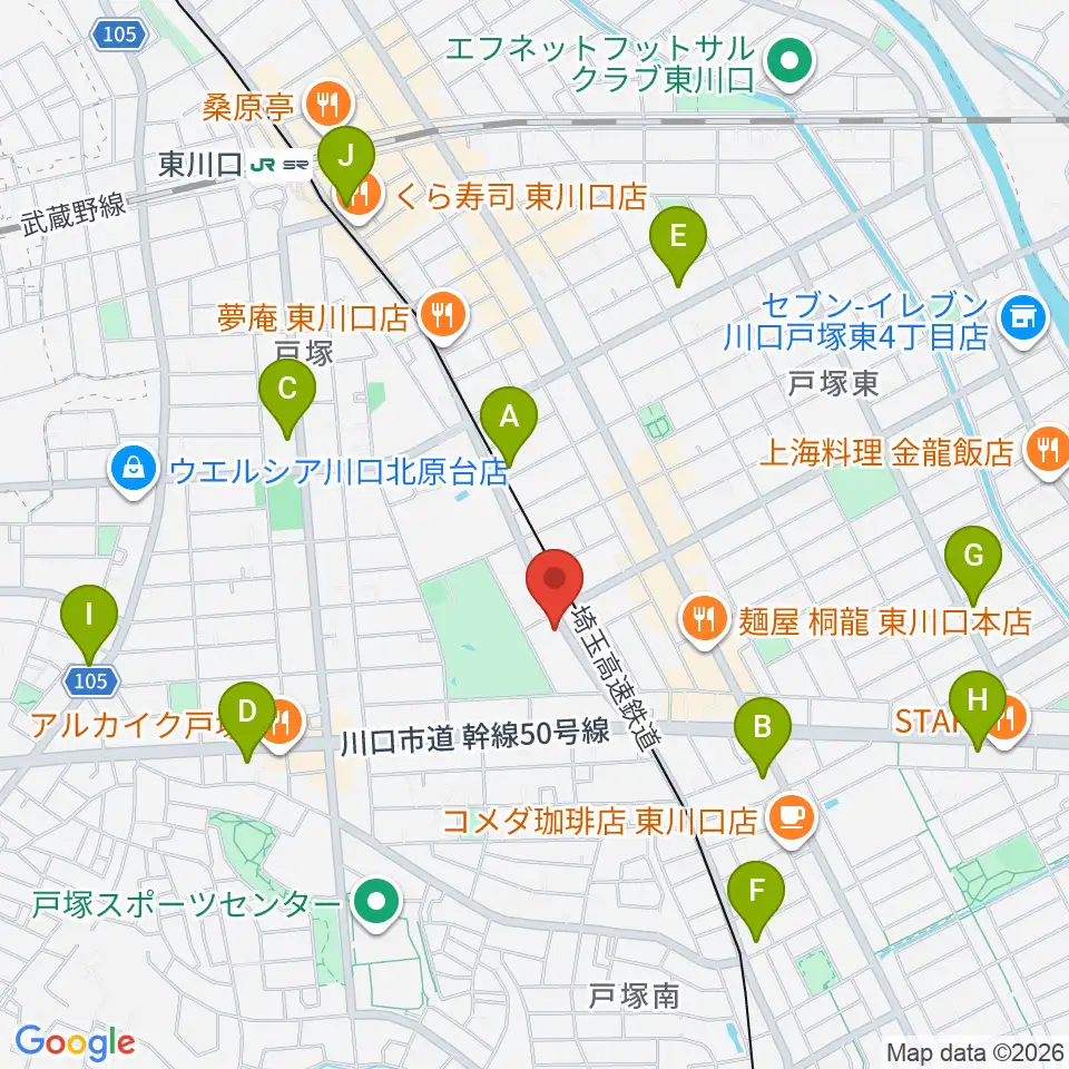 柏屋楽器 ミュージックサロン東川口周辺のコンビニエンスストア一覧地図