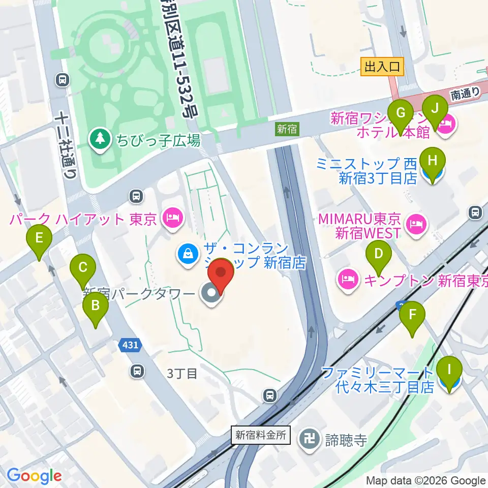 新宿パークタワーホール周辺のコンビニエンスストア一覧地図