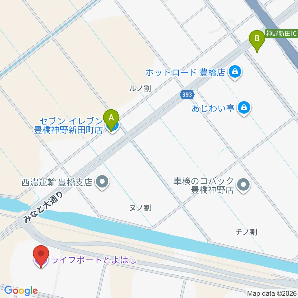 ライフポートとよはし周辺のコンビニエンスストア一覧地図