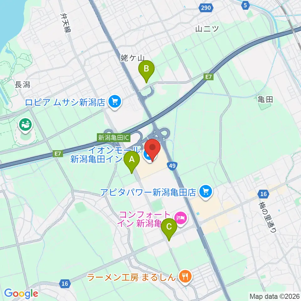 JEUGIAカルチャーセンター イオンモール新潟南周辺のコンビニエンスストア一覧地図