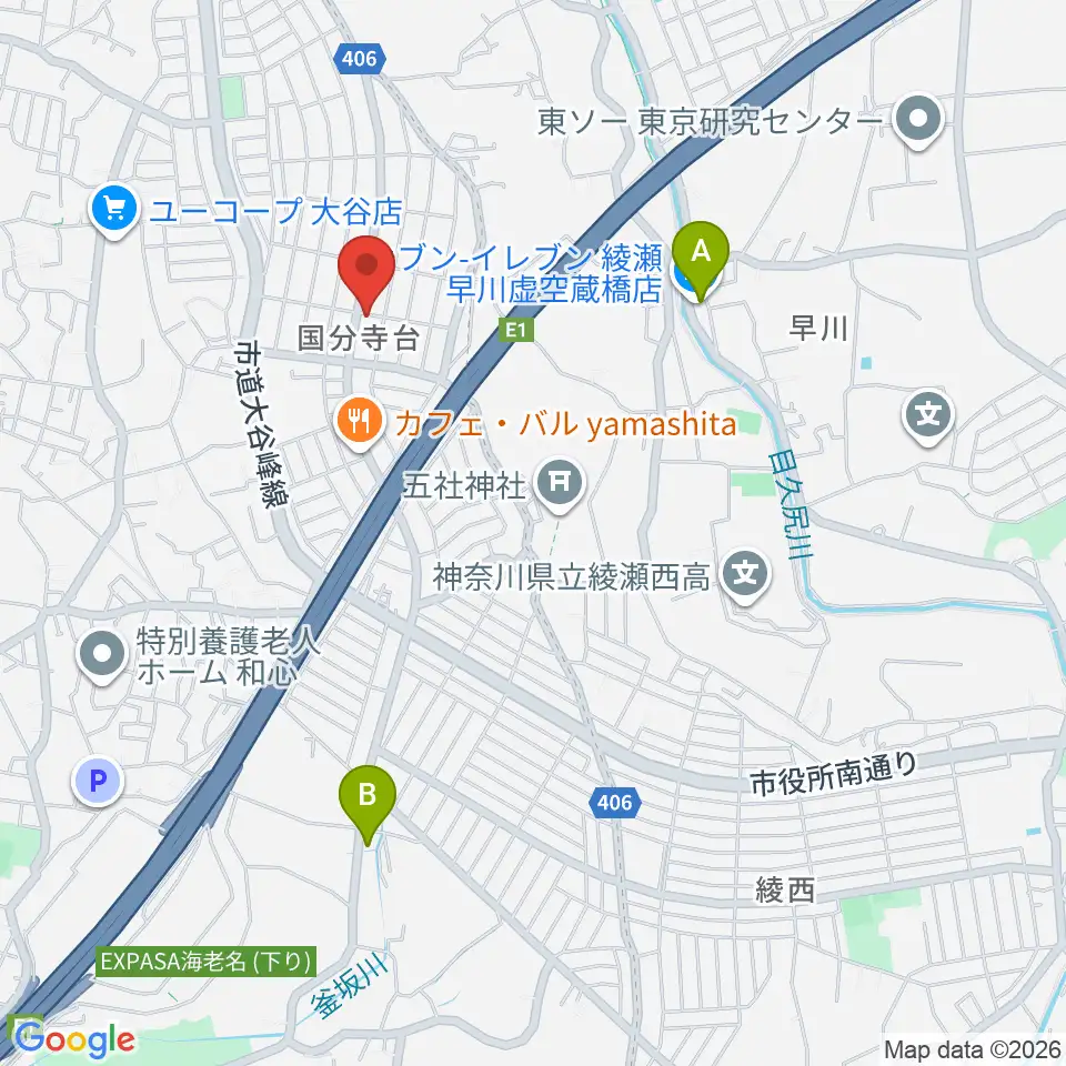 厚木楽器 アミ国分寺台周辺のコンビニエンスストア一覧地図