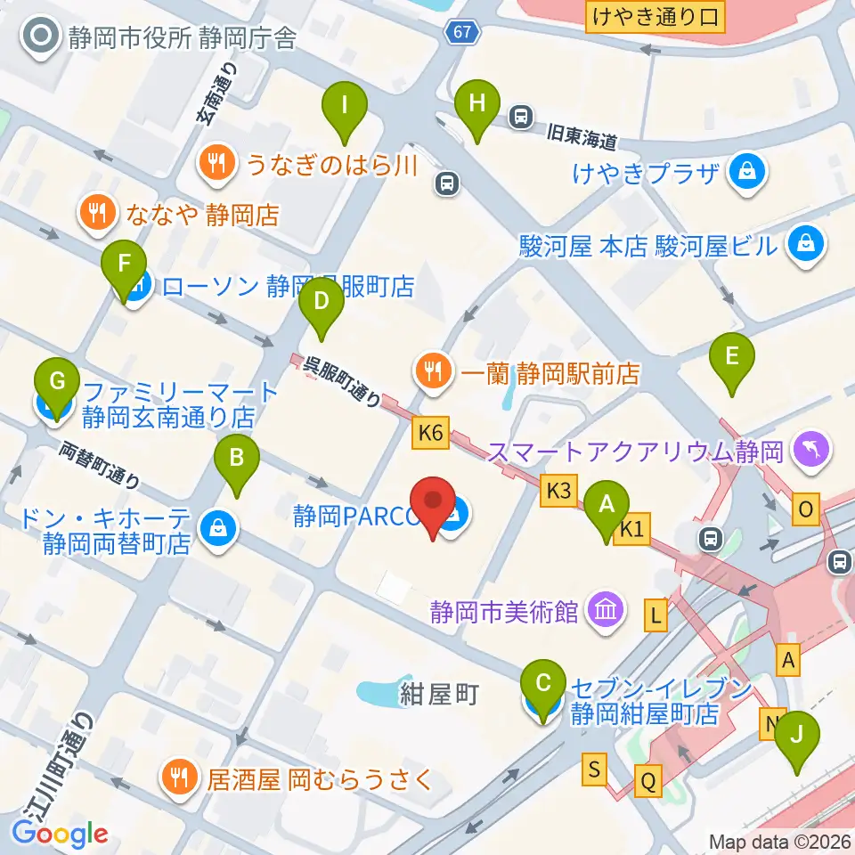タワーレコード静岡店周辺のコンビニエンスストア一覧地図