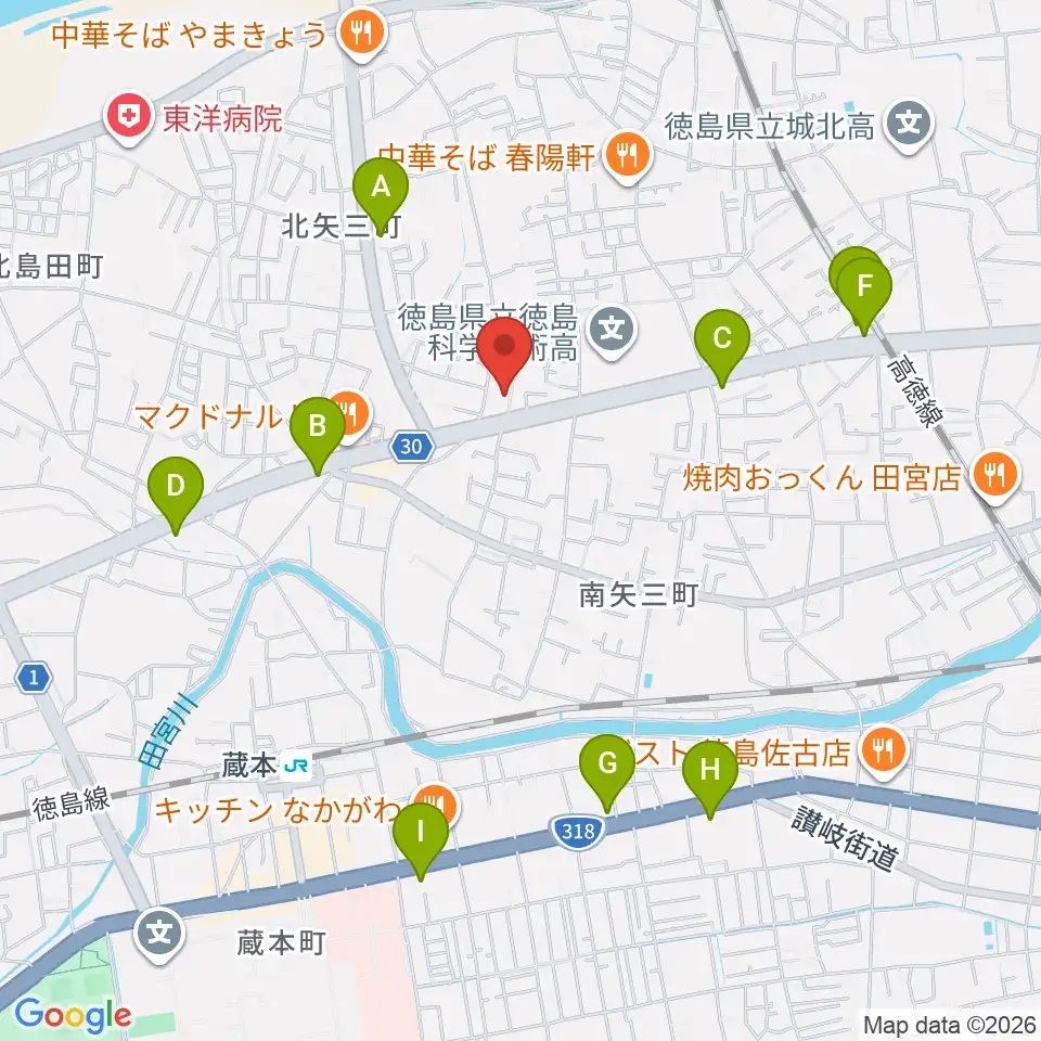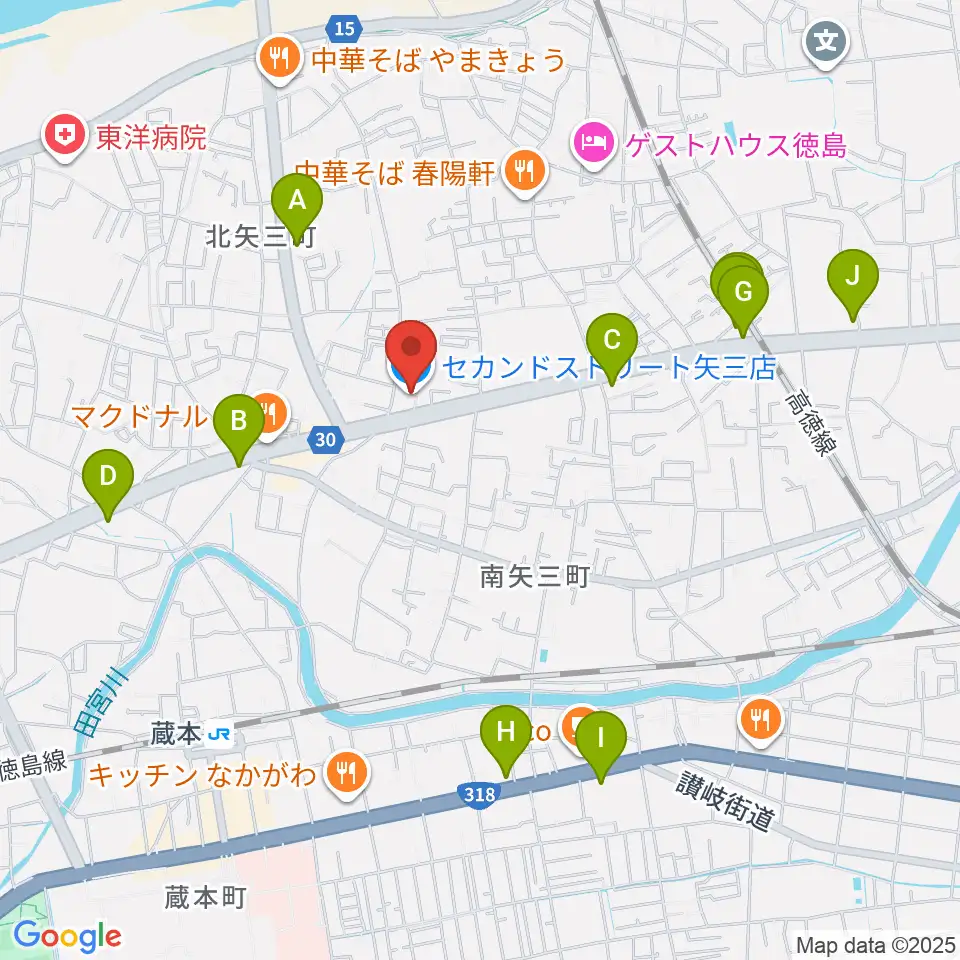 ゲオ徳島矢三店周辺のコンビニエンスストア一覧地図