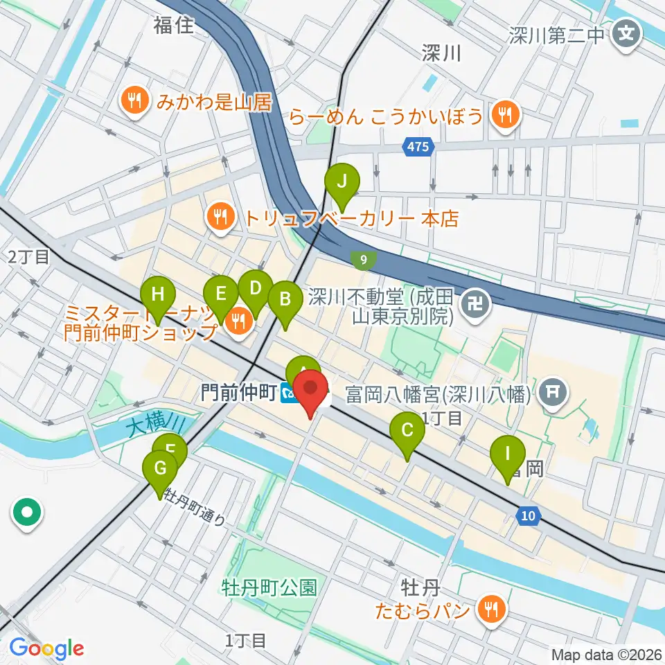 八重洲ピアノ社 門前仲町センター周辺のコンビニエンスストア一覧地図