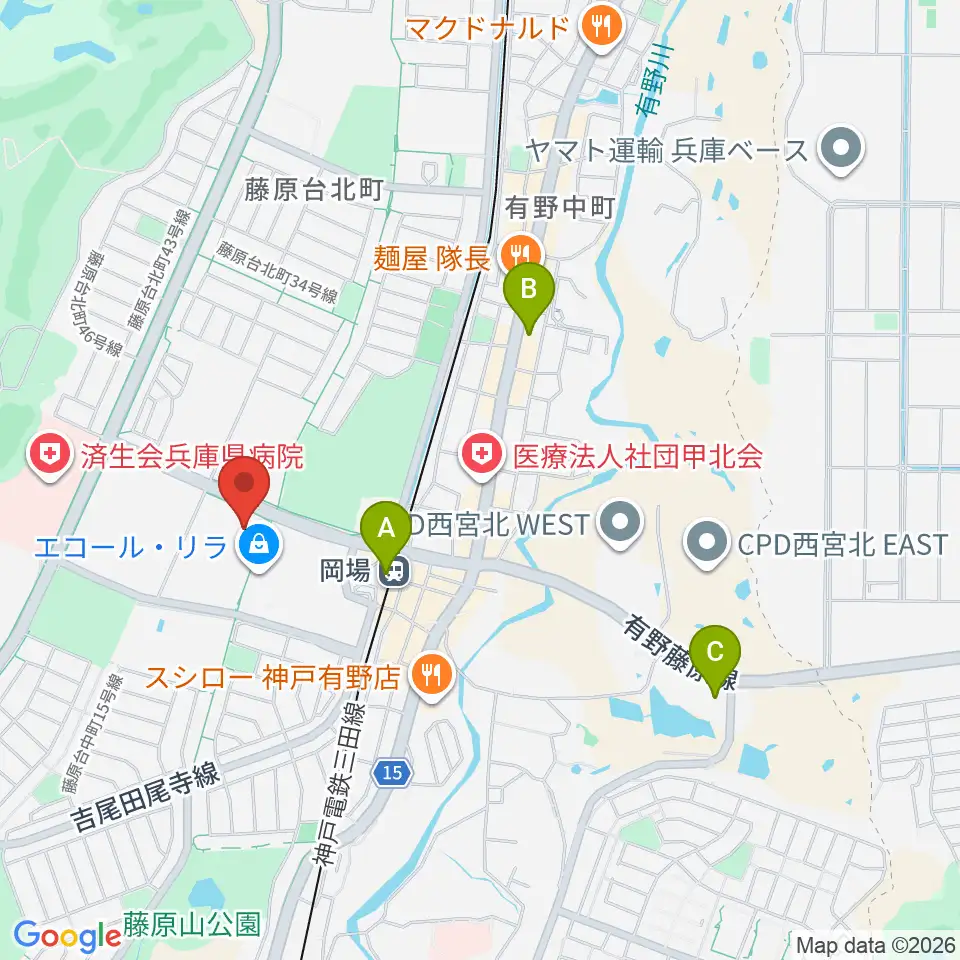 神戸市立北神区文化センター周辺のコンビニエンスストア一覧地図