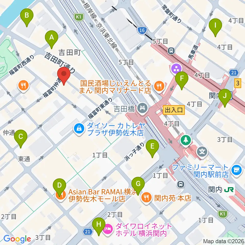 関内リトルジョン周辺のコンビニエンスストア一覧地図