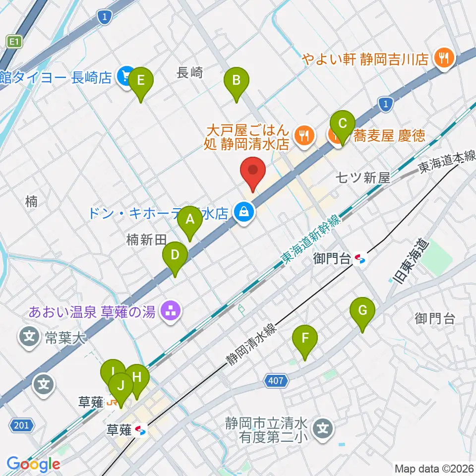 音楽天国 静岡草薙店周辺のコンビニエンスストア一覧地図