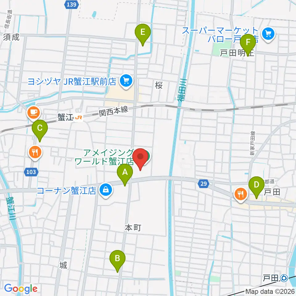 矢木楽器店 ミュージックサロン蟹江周辺のコンビニエンスストア一覧地図