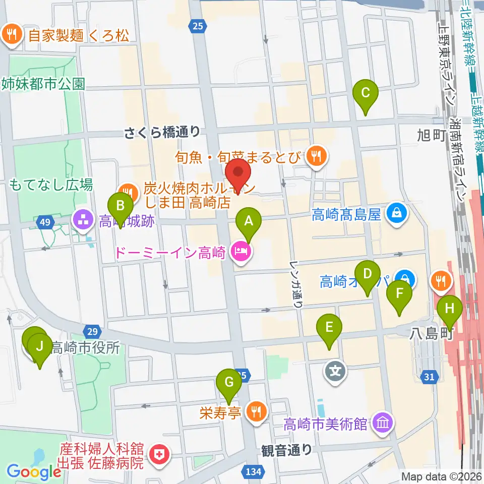 高崎WOAL周辺のコンビニエンスストア一覧地図