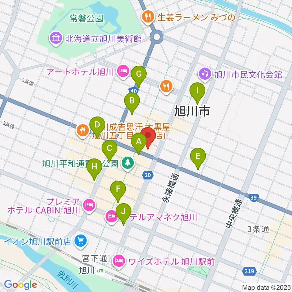 ヤマハミュージック 旭川店周辺のコンビニエンスストア一覧地図