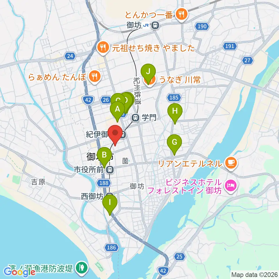 御坊市民文化会館周辺のコンビニエンスストア一覧地図