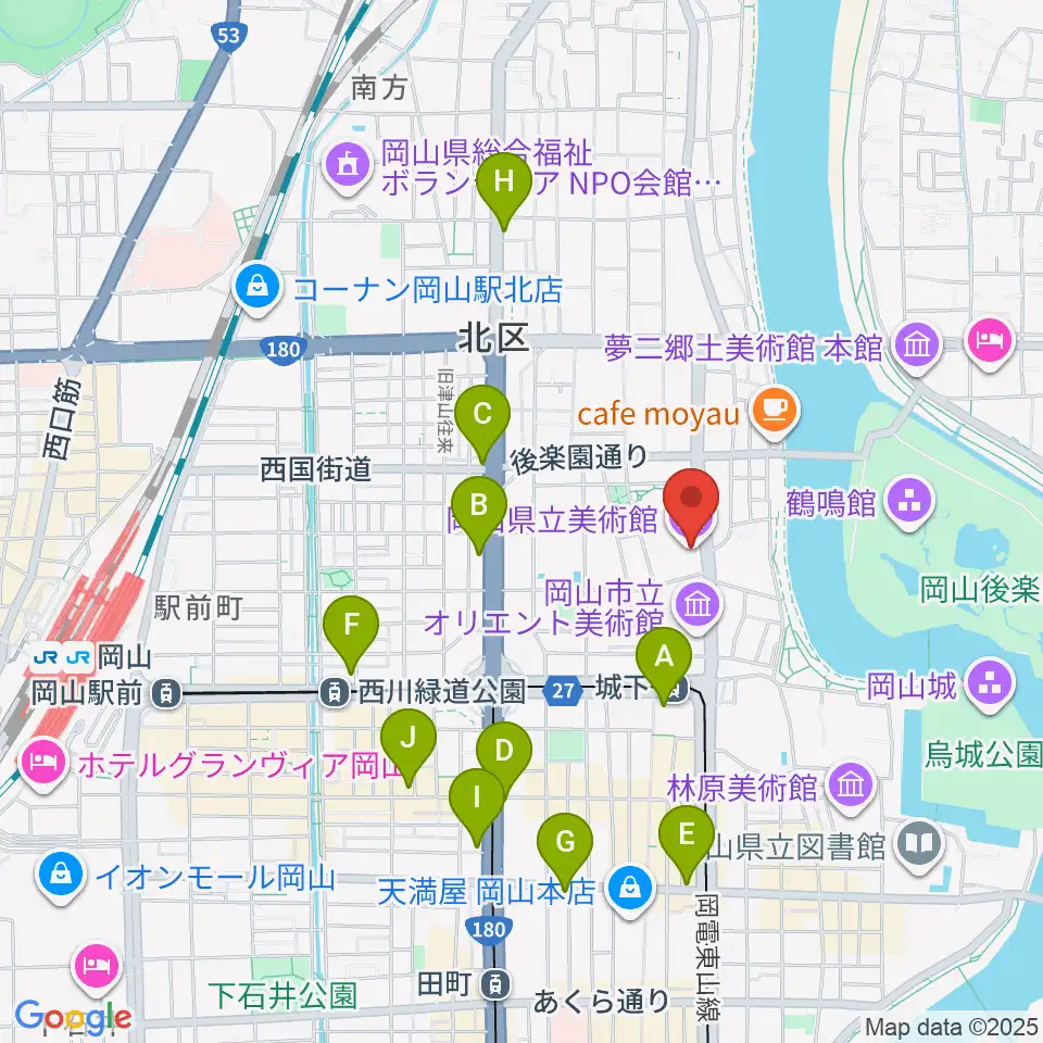 岡山県立美術館周辺のコンビニエンスストア一覧地図
