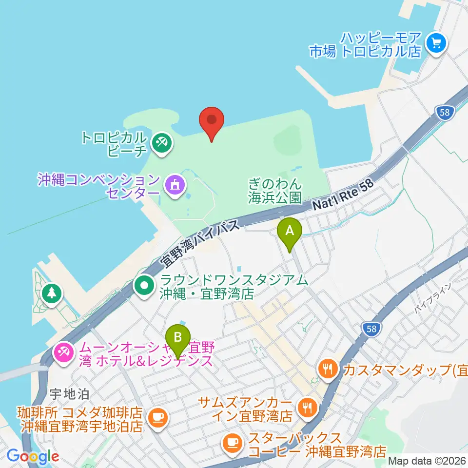 ぎのわん海浜公園屋外劇場周辺のコンビニエンスストア一覧地図