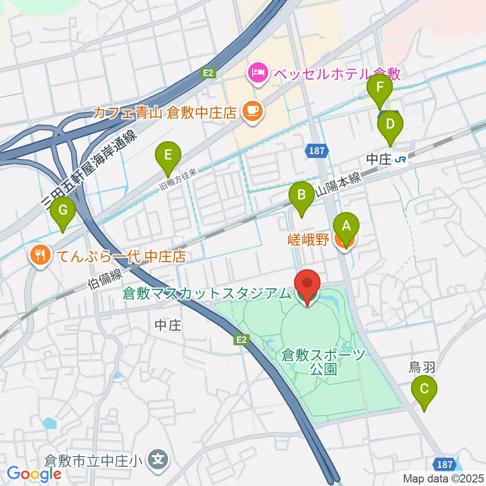 倉敷マスカットスタジアム周辺のコンビニエンスストア一覧地図