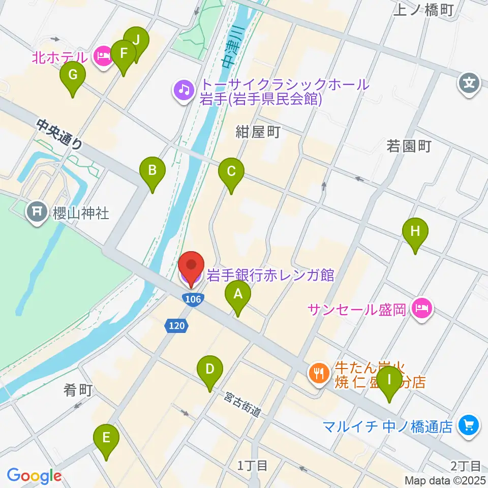 岩手銀行赤レンガ館周辺のコンビニエンスストア一覧地図