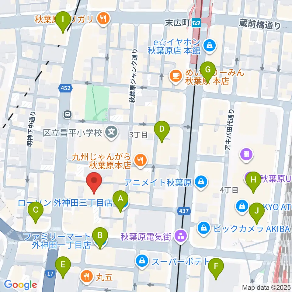 秋葉原ZEST周辺のコンビニエンスストア一覧地図