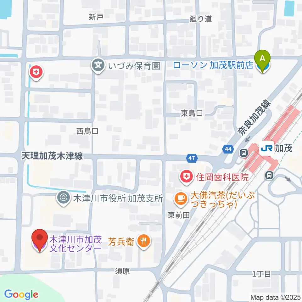 木津川市加茂文化センター あじさいホール周辺のコンビニエンスストア一覧地図