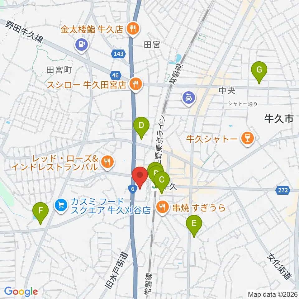 牛久市エスカード生涯学習センター周辺のコンビニエンスストア一覧地図