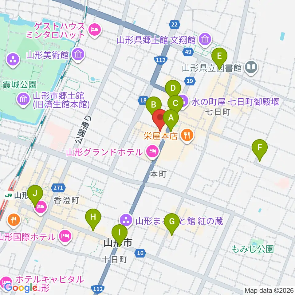 山形市中央公民館ホール周辺のコンビニエンスストア一覧地図