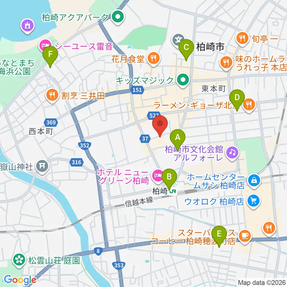 柏崎市産業文化会館周辺のコンビニエンスストア一覧地図