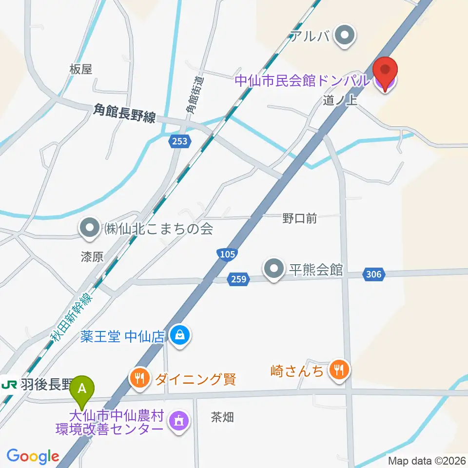 中仙市民会館ドンパル周辺のコンビニエンスストア一覧地図