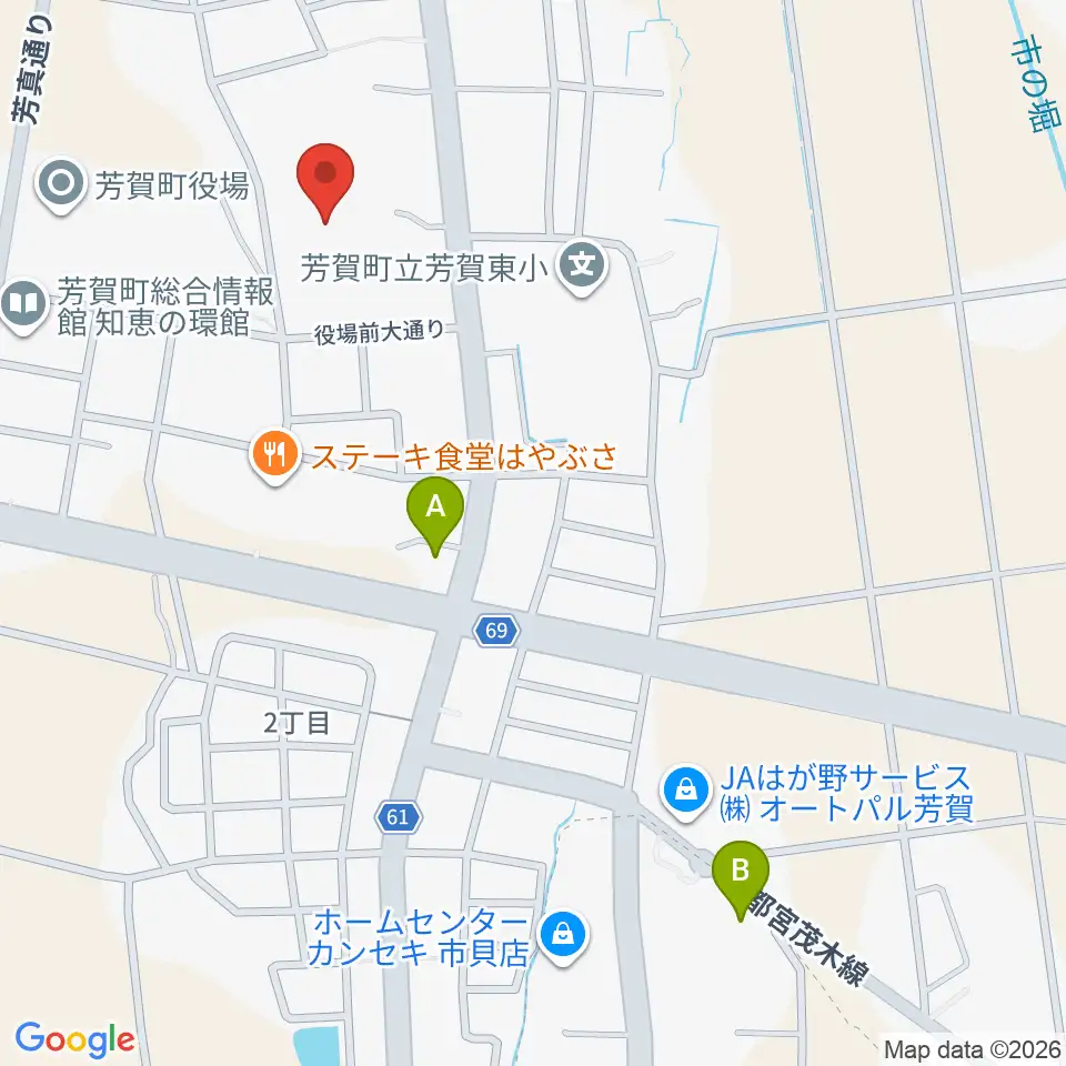 芳賀町民会館周辺のコンビニエンスストア一覧地図