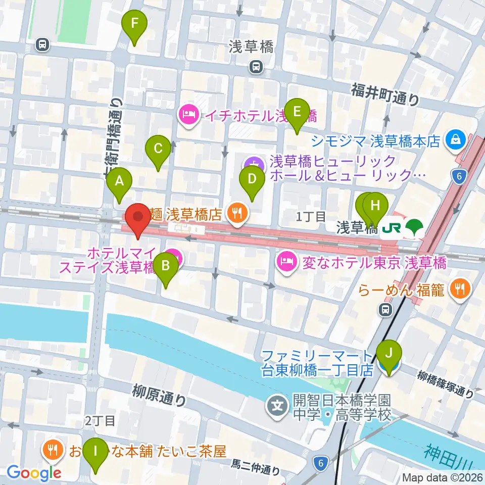 浅草橋マンホール周辺のコンビニエンスストア一覧地図