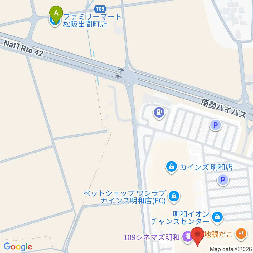 109シネマズ明和周辺のコンビニエンスストア一覧地図