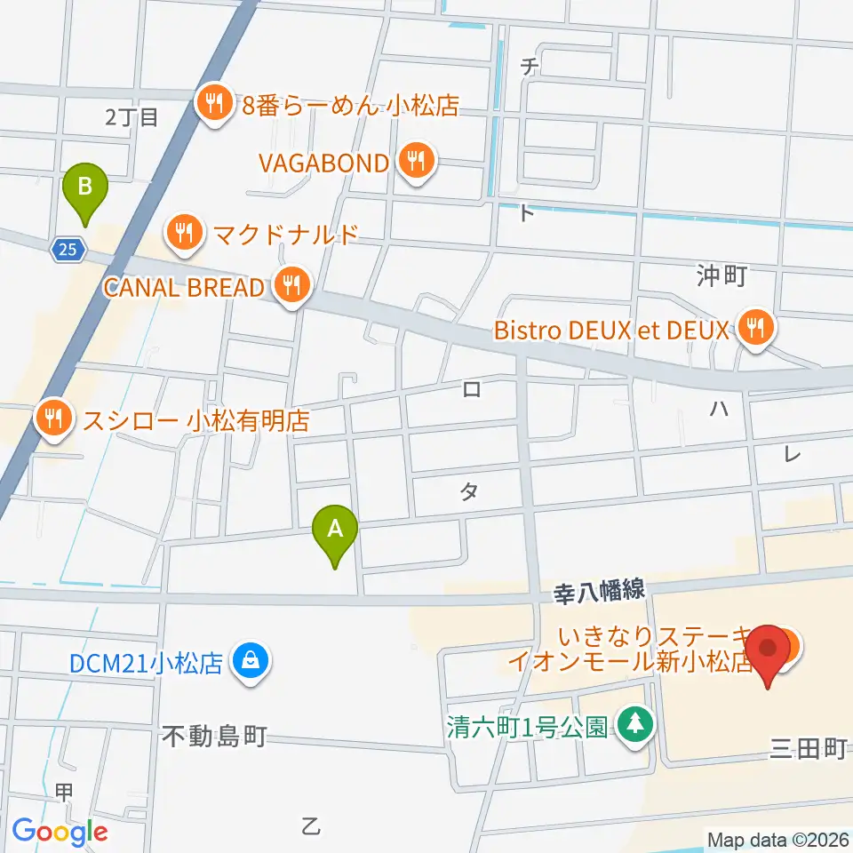 イオンシネマ新小松周辺のコンビニエンスストア一覧地図