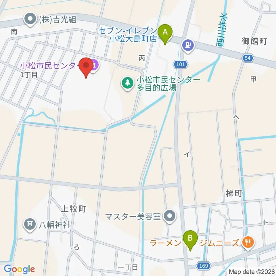小松市民センター周辺のコンビニエンスストア一覧地図