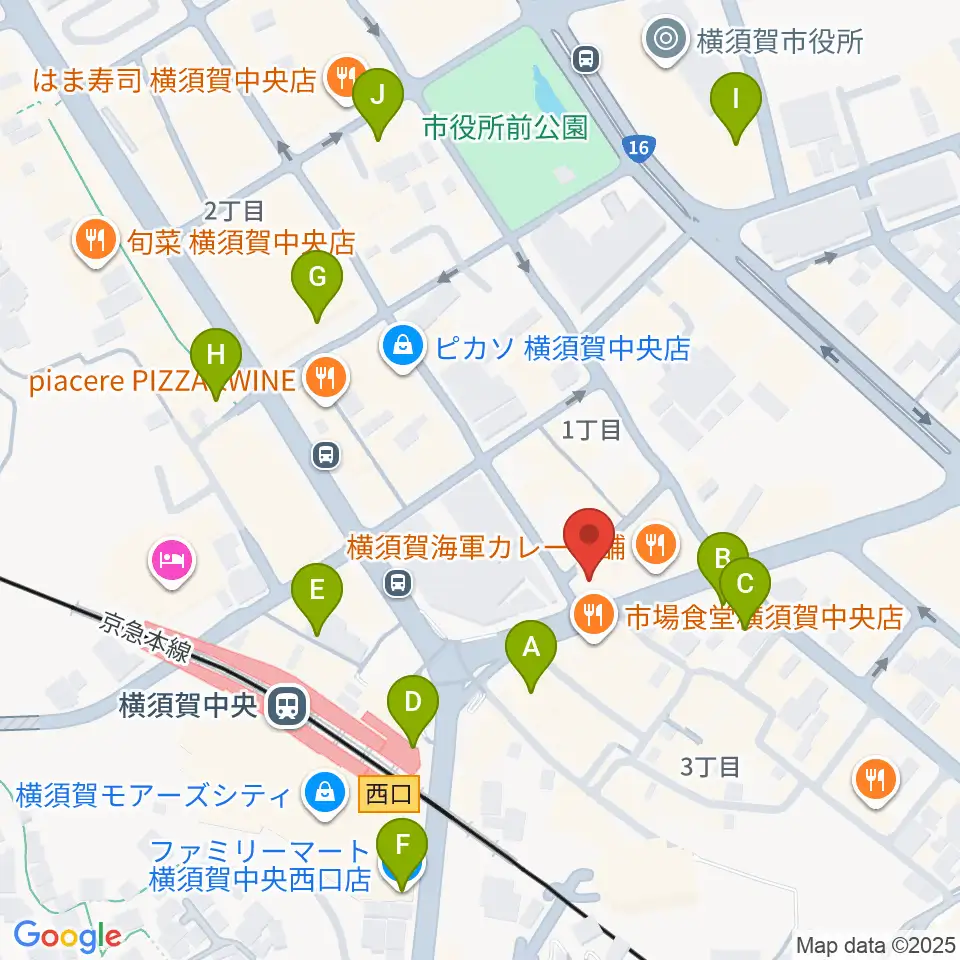 よこすかピアノスタジオ周辺のコンビニエンスストア一覧地図