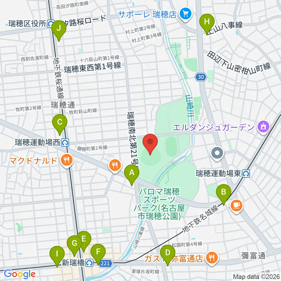 パロマ瑞穂野球場周辺のコンビニエンスストア一覧地図