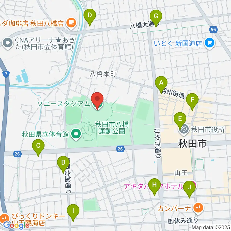 ソユースタジアム周辺のコンビニエンスストア一覧地図