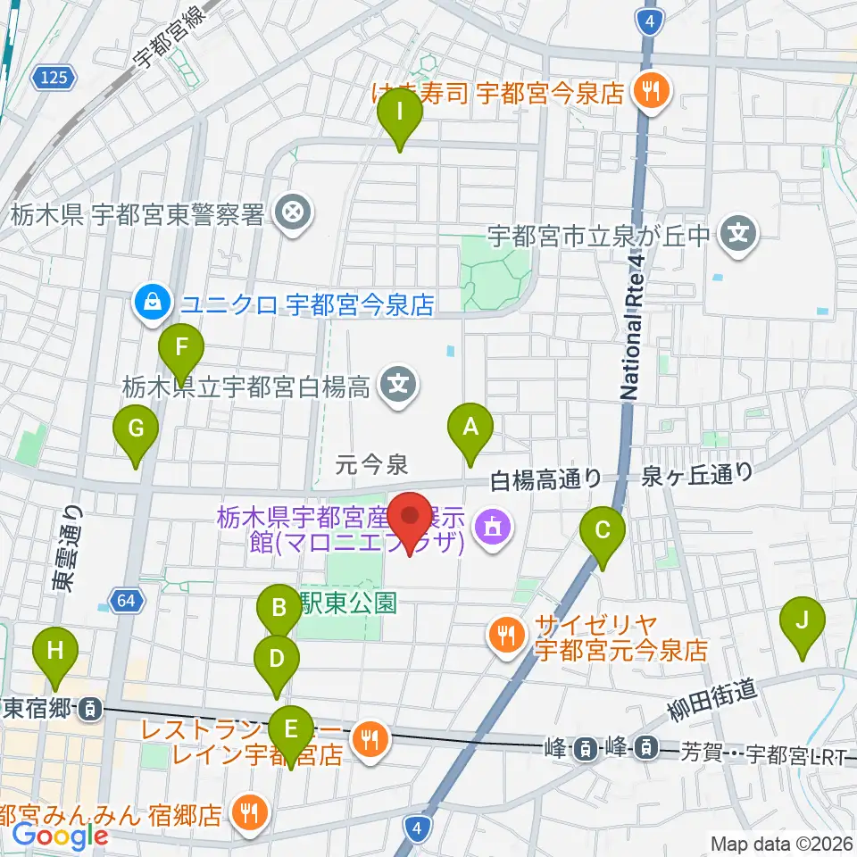 ブレックスアリーナ宇都宮周辺のコンビニエンスストア一覧地図