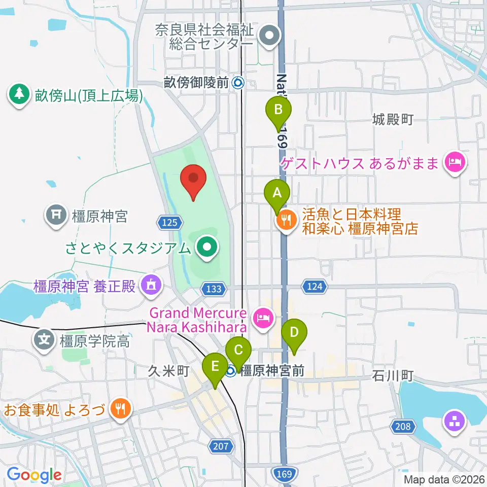 橿原公苑陸上競技場周辺のコンビニエンスストア一覧地図